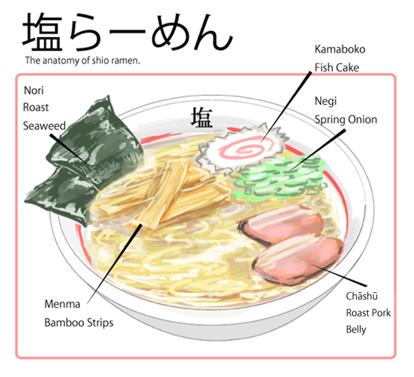 Shio ramen is salty and light and sometimes has seafood in it. Out of all the varieties, shio is most likely to have kamaboko in it.