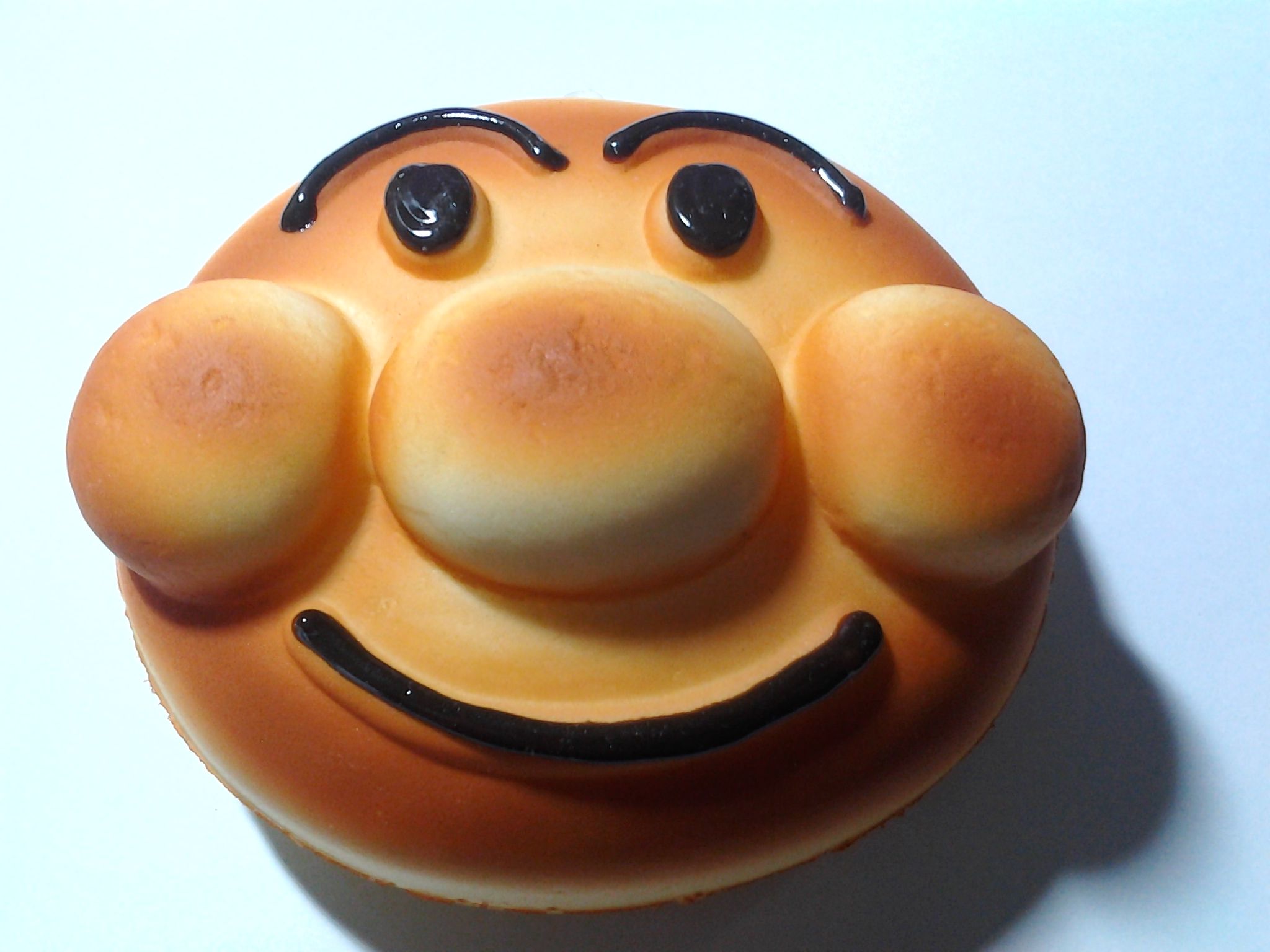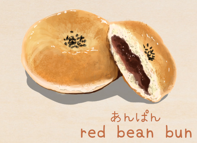 The first Japanese bread to come into existence was the “anpan” (a sweet bun filled with red bean paste. “An”= sweet bean paste “pan”= bread). Anpan might be best known as being the bread that makes up beloved bread-cartoon hero, Anpanman‘s head (anpan in the shape of Anpanman’s face below).