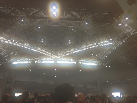 In summer of 2013 there was so much moisture and body heat that a cloud actually formed inside the convention hall…