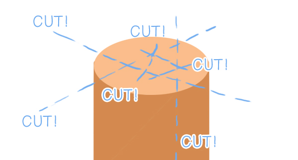 Take your omelette and fold it over. Take clean scissors and make cuts in it like the picture below.