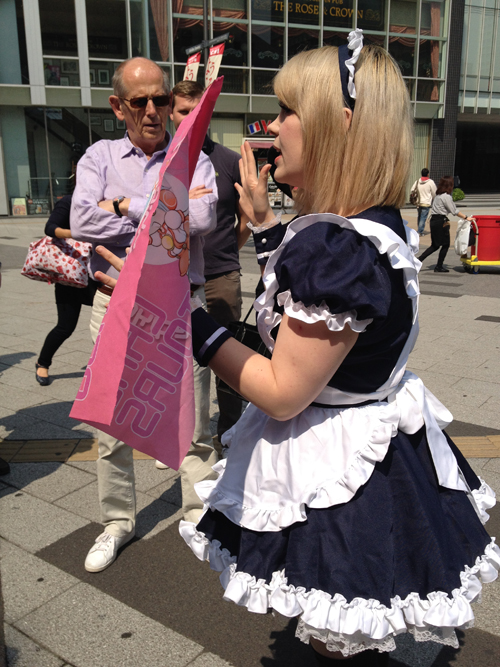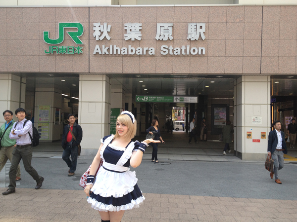I went on a maid-guided tour with Akiba Land. Here is my guide in front of Akihabara Station.