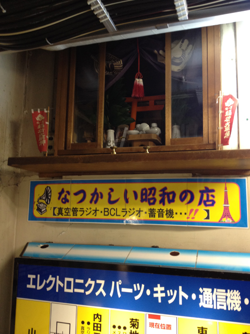 Right near the station is a bit of a run-down building with electronics and parts. Apparently there used to be a shrine there that got burnt down. Now there is a mini-shrine in the building that was built over it.