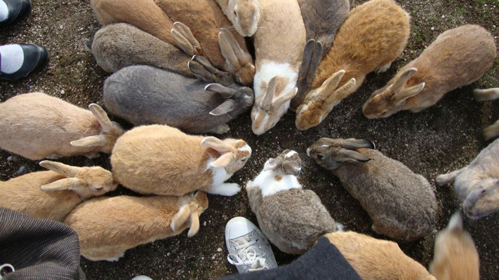 In Hiroshima Prefecture lies an island almost entirely populated by rabbits.