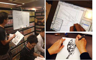 ABOUT: 10,000 books at your disposable, drawing desks and computers with pen tablets loaded with Photoshop and Manga Studio.